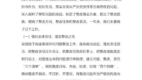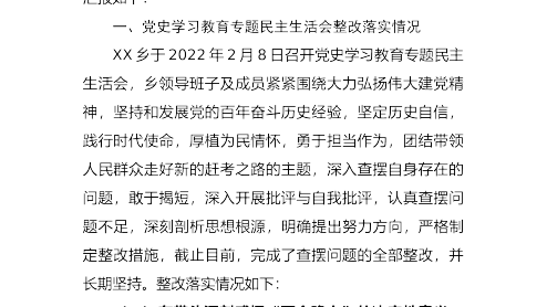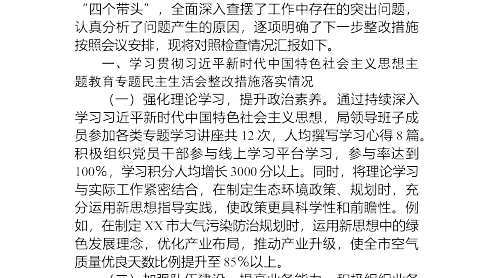 XX党组2023年民主生活会整改落实情况报告(全文4077)