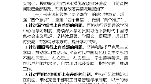 县政府办公室民主生活会查摆问题整改落实情况通报