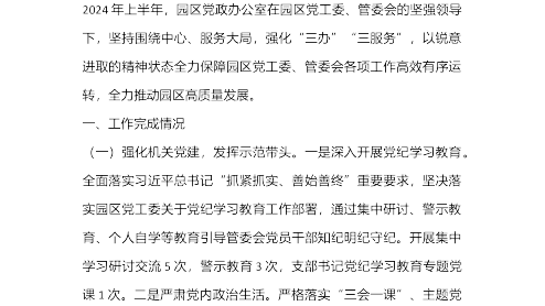 某工业园区党政办公室2024年上半年工作总结暨下半年工作举措