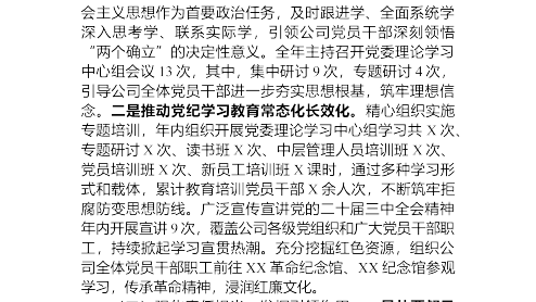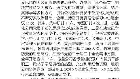 2024年履行全面从严治党“第一责任人”职责情况报告