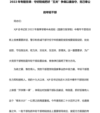 主题党课(含PPT):以大会精神为统领,奋力在新时代新征程中谱写高质量发展新篇章党的二十大,是在全党全国各族人民迈上全面建设社会主义现代化国家新征程、向第二个百年奋斗目标进军的关键时刻召开的一次十分重要的大会,对于我们党在新时代新征程上团结带领全国各族人民全面建设社会主义现代化国家、全面推进中华民族伟大复兴,具有重大的现实意义和深远的历史意义。学习宣贯党的二十大精神,是当前和今后一个时期全党全国的首要政治任务。习主席对学习宣贯高度重视,作出一系列重要指示,省委和市委相继动员部署,迅速掀起了学习宣贯热潮。为提领站位、深化理解,进一步把学习宣贯引向深入,今天我围绕“以党的二十大精神为统领,奋力谱写...