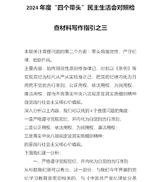 2024年度“四个带头”民主生活会对照检查材料写作指引之三