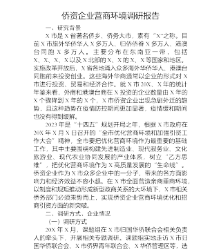 关于对民营企业对优化营商环境的核心诉求及解决思路的调研与思考 营商环境是指企业等市场主体在市场经济活动中所涉及的体制机制性因素和条件。①良好的营商环境是一个国家或地区经济软实力的重要体现,也是一个国家或地区提高综合竞争力的重要方向。好的营商环境就是生产力、竞争力。 ②优化提升营商环境,就是解放生产力、提高竞争力营造一个市场化、法治化、国际化的一流营商环境,有利于提升我国参与国际竞争的综合实力,培育对外开放的优势。营商环境好不好,市场主体是直接感知者。营商环境的优化提升,出发点应是企业诉求,方向应是满足企业诉求。企业诉求是政府部门营商环境供给侧改革的“导航仪”。 因此,从民营企业的诉求角度...