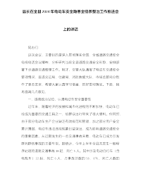 县长在全县2024年电动车安全隐患全链条整治工作推进会上的讲话 同志们: 这次会议,主要目的是深入贯彻落实全国、全省道路交通安全电视电话会议精神,分析研判当前全县道路交通安全形势,安排部署下步道路交通管理工作。刚才,交警大队通报了电动车交通安全管理情况,县道交运局、住建局、消防救援大队、市场监管局分别作了表态发言,希望大家认真学习借鉴,抓好贯彻落实。下面,我再强调几点意见。 一、提高政治站位,认清电动车安全重要性 近年来,随着经济的发展和城市化进程的不断加快,电动车已经成为重要的交通工具之一,给群众出行带来了很大便利。但同时,由于部分电动车生产企业缺乏有效规范和管理,加之部分用户安全意...