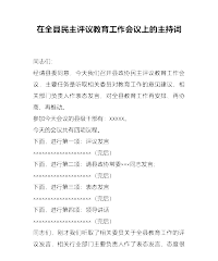 在全县民主评议教育工作会议上的主持词同志们:经请县委同意,今天我们召开县政协民主评议教育工作会议,主要任务是听取相关委员对教育工作的意见建议,相关部门负责人作表态发言,对全县教育工作再安排、再协商、再推动。参加今天会议的县级干部有:XXXXX。今天的会议共有四项议程。下面,进行第一项:评议发言××××××××××××××××××××(完后)下面,进行第二项:请县政协常委×××同志发言;××××××××××××××××××××(完后)下面,进行第三项:表态发言××××××××××××××××××××(完后)下面,进行第四项:领导讲话××××××××××××××××××××(完后)同志们,刚才我们...