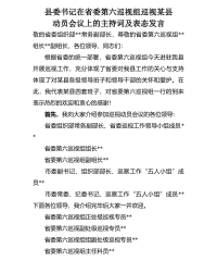 县委书记在省委第六巡视组巡视某县动员会议上的主持词及表态发言