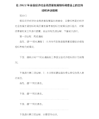 在2022年全县经济社会高质量发展指标调度会上的主持词和讲话提纲同志们:现在召开经济社会高质量发展指标调度会,主要任务是对经济社会发展主要指标和高质量发展考核指标完成情况进行盘点,对第四季度有关工作进行部署。会议共有五项议程,下面依次进行。第一项议程,两项通报:首先,请***部长通报1-8月全市及各县高质量发展综合绩效指标考核完成情况。………………………………………………………下面,请统计局***同志通报前三季度全县经济指标预计完成情况。………………………………………………………下面进行第二项议程,1-8月排名靠后指标牵头单位负责人表态发言。首先,请***同志表态。……………………………………...