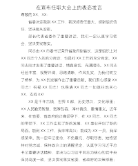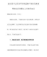 县纪委书记在全市纪检监察干部队伍教育整顿动员部署会上的表态发言尊敬的各位领导、同志们: 根据会议安排,下面我代表XX县纪委监委,就落实好此次会议精神,扎实开展全县纪检监察干部队伍教育整顿,努力锻造忠诚干净担当、敢于善于斗争的纪检监察干部队伍,作表态发言如下: 一、强化政治自觉,真正做到触及思想灵魂 纪检监察机关是党的纪律部队,开展纪检监察干部队伍教育整顿是坚持打铁还需自身硬的必然要求,我们将坚决落实中央和省市关于纪检监察干部队伍教育整顿的各项工作部署。坚持用用习近平总书记重要讲话和重要指示批示精神引领纪检监察机关自身建设,在深学笃行中不断提高政治判断力、政治领悟力、政治执行力,切实把对“...
