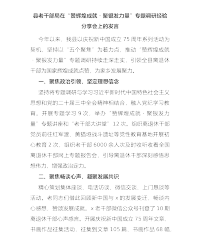 县老干部局在“赞辉煌成就・聚银发力量”专题调研经验分享会上的发言今年以来,我县以庆祝新中国成立75周年系列活动为契机,坚持以“五个聚焦”为着力点,推动“赞辉煌成就・聚银发力量”专题调研持续走深走实,引领全县离退休干部为国家辉煌成就点赞,为家乡发展聚力。一、聚焦政治引领,坚定理想信念坚持将专题调研与学习习近平新时代中国特色社会主义思想和党的二十届三中全会精神相结合,融入党纪学习教育。开展专题学习9次,举办“赞辉煌成就・聚银发力量”专题讲座和“老干部大讲堂”12次。组织离退休干部党员前往红军渡、黄猫垭战斗遗址等党性教育基地开展初心教育2次,组织老干部6000余人次及时收听收看全国离退休干部网上专题...