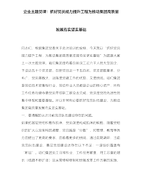 企业主题党课:抓好党员能力提升工程为推动集团高质量发展夯实坚实基础同志们,根据集团党委关于此次培训的安排,今天我以“抓好党员能力提升工程,为推动集团高质量发展夯实坚实基础”为题跟大家上一次主题党课。咱们集团是有着在册员工近六千人的大型国企,下设近五十个党支部,在册党员近一千五百名,党支部数量多、分布广,党员基数大,这既是党建工作的优势,又是挑战。咱们集团是劳动技术密集型行业,劳动作业人员都是企业的核心资产,所有工作任务均要依靠党员带领职工群众去完成,党员是党的先进性的集中体现和重要基础。所以非常有必要抓好党员队伍建设,为推动集团高质量发展夯实坚实基础。一、要清醒的认识当前党员队伍建设存在的问题...