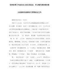 在思政课工作座谈会上的交流发言:牢记嘱托勇担使命着力加强和改进新时代思想政治工作尊敬的各位领导,同志们:党的十八大以来,习近平总书记高度重视高校思想政治工作,亲自部署、亲自推动,发表了一系列重要论述。近日,习近平总书记对学校思政课建设作出重要指示,为我们进一步做好各项工作,指明了前进方向,提供了根本遵循。**大学作为我们党亲手创建的重点综合性大学,“红”是底色、是底蕴,也是学校思政工作的“根”和“魂”。近年来,学校思政工作总的理念思路是,坚持党建领航、精神铸魂、文化润心,传承发展**文脉,引领师生爱党报国,推动学校思政工作走在前列、争当标杆。总的推进路径是,以“五育并举”理念建构体系,以“三全...
