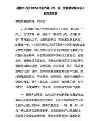 县委书记在2024年全市县(市、区)党委书记座谈会上的交流发言尊敬的各位领导,同志们:2024年是中华人民共和国成立75周年,是实施“十四五”规划关键一年,是浙江“勇当先行者、谱写新篇章”的再出发之年,也是我县争当“高质量发展全优生”的重要一年。××县将坚持以习近平新时代中国特色社会主义思想为指导,深入贯彻习近平总书记考察浙江重要讲话和指示批示精神,全面贯彻落实中央经济工作会议、省委全会、省委经济工作会议、市委全会暨经济工作会议精神,紧扣坚持稳中求进、以进促稳、先立后破,紧扣“高质量发展全优生”目标,坚持高质量发展首要任务不动摇,坚持强化政治担当、争先担当、创新担当、使命担当相统一,全面投身实...