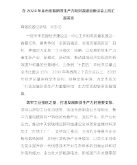 在2024年全市发展新质生产力和财源建设座谈会上的汇报发言