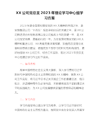 XX公司党总支2023年理论学习中心组学习方案(国企)