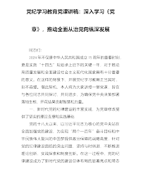 党纪学习教育党课讲稿:深入学习《党章》,推动全面从治党向纵深发展