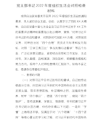 党支部书记2022年度组织生活会对照检查材料按照自治区党委关于召开2022年度组织生活会的通知要求,本人紧扣会议主题。会前,认真学习了党的XX大精神、自治区党委十届七次全会及习近平总书记关于XX工作的重要讲话精神和重要指示批示精神,聚焦“对照习近平总书记的号召和要求,对照新时代党的XX方略,对照党员义务,对照自治区“四个合格”党员正向标准和反向指标,对照“三学三亮三比”争当先锋行动要求”等五个方面,广泛征求意见建议,紧密结合思想和工作实际,主动对号、深入查摆,追根溯源、深刻剖析,明确整改措施和努力方向。现将个人对照检查情况汇报如下。如有不妥之处,敬请各位常委批评指正。一、查摆的问题(一)对照习...