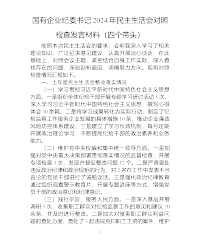 某区委常委、区纪委书记2024年度民主生活会个人对照检查材料(四个带头)根据市纪委机关与市委组织部《关于开好2024年度县以上党和国家机关党员领导干部民主生活会的通知》,近期我围绕会议主题深入学习习近平新时代中国特色社会主义思想、《中国共产党纪律处分条例》等,及时跟进学习习近平总书记最新重要讲话精神,积极参与中心组学习研讨活动。同时结合自身实际,广泛征求意见、谈心与自查查摆差距不足,剖析根源,制定整改措施,明确努力方向下面,我围绕“四个带头”作对照检查发言,不妥之处,请各位同志批评指正。一、存在的问题(一)带头严守政治纪律和政治规矩,维护党的团结统一方面。一是政治理论学习的“道路”需要深化拓展...