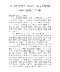 市委社会工作部党组书记学习2025年全国两会精神中心组研讨发言材料尊敬的各位领导、同志们:在这春风送暖、万象更新的美好时节,2025年全国两会胜利召开。这是一次凝聚共识、汇聚力量、共商国是的重要盛会,为我们各项工作指明了方向,注入了强大动力两会期间,习近平总书记的重要讲话和大会通过的各项决议,充分体现了党和国家对人民群众的深切关怀,对社会发展的深远谋划。作为市委社会工作部党组书记,我深感责任重大、使命光荣,通过深入学习两会精神,结合工作实际,有以下几点深刻体会。一、强化党建引领,夯实基层根基(一)全国两会强调了党建工作在推动各项事业发展中的重要引领作用。新兴领域党建工作作为党建工作的重要组成部...