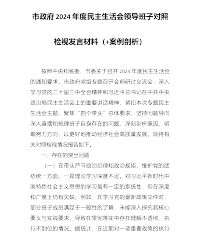 市政府2024年度民主生活会领导班子对照检视发言材料(+案例剖析)