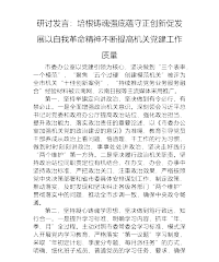 研讨发言:培根铸魂强底蕴守正创新促发展以自我革命精神不断提高机关党建工作质量市委办公室以党建引领为核心,坚决做到“三个表率,一个模范”,“聚焦‘五个过硬’创建模范机关”被评为全市机关“十佳创新案例”,“持续推动党务业务服务融合”经验材料被云南网、云南日报等主流媒体采用推广。第一,坚持举旗定向讲政治,坚决做到有令必行、有禁必止。一是全面增强政治机关意识。深刻领会习近平总书记对党委和政府办公厅提高政治站位、强化政治担当、提升政治能力、落实政治责任的重要论述,以《市委办公室加强机关党的政治建设的意见》为准绳,教育引导党员干部养成从政治上看问题、悟道理、干工作的行为习惯,做到时时刻刻讲政治、事事处处讲...