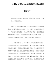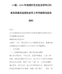 (5篇)2024年度组织生活会支部书记代表支部委员会报告全年工作开展情况发言材料