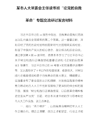 某市人大常委会主任读书班“论党的自我革命”专题交流研讨发言材料 习近平总书记在xx报告中指出,自我革命是我们党跳出治乱兴衰历史周期率的第二个答案。这一重要论断,深刻总结了党的历史经验特别是新时代治国理政实践经验,彰显了中国共产党人的初心使命、政治担当和历史自觉。通过参加第X期xx读书班,原原本本学习了习近平总书记关于树立和践行正确政绩观重要论述和《论党的自我革命》等著作,习近平总书记在XX考察X时的重要讲话精神等,又认真聆听了X书记作的专题党课,收获很大,对树立践行正确政绩观和勇于自我革命的重大意义、精髓要义、实践要求有了更全面的认识和理解,对发扬自我革命精神努力推动地方人大工作创新发展有了...