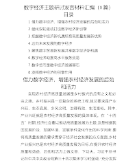 数字经济主题研讨发言材料汇编(8篇)目录1.借力数字经济,增强农村经济发展的后劲和活力2.强化双轮驱动打造数字经济新引擎3.把握数字经济新机遇培育高质量发展新优势4.迈向未来发展的数字经济5.聚焦数字贸易新发展共享数字经济新机遇6.数字经济助推高水平服务贸易7.数字货币是数字经济发展基石8.发挥数字经济的引擎作用借力数字经济,增强农村经济发展的后劲和活力实现农村经济高质量发展是乡村振兴的应有之义和必由之路。乡村振兴是一项复杂的系统工程,其总要求是产业兴旺、生态宜居、乡风文明、治理有效、生活富裕。其中,产业兴旺就是农村经济高质量发展的具体体现。在“十四五”时期,经济社会要以推动高质量发展为主题,...
