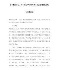 在党委中心组政治纪律、组织纪律专题研讨会上的发言材料汇编(11篇)严明组织纪律,忠诚担当尽责 “严守党的纪律,保守党的秘密,对党忠诚,积极工作”是入党誓词中的内容,党的组织纪律是党员必须遵守和维护的行为准则,是处理党组织之间和党组织与党员之间关系的纪律。组织纪律保证了党的坚强的战斗力,保证了上级部署的贯彻执行,保证了党的先进性。作为一名基层党支部书记,必须带头严明党的组织纪律,坚决做到以下几点: 第一,要勤于学习,增强党性修养。党章要求我们务必做到四个服从:党员个人服从党的组织,少数服从多数,下级组织服从上级组织,全党各个组织和全体党员服从党的全国代表大会和中央委员会。作为一名支部书记,更...