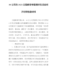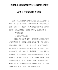 XX党员干部2023年第一批主题教育专题组织生活会“六个方面”个人对照检查材料(内含案例分析)按照中共xxxx纪委机关、中共xxxx组织部、XX主题教育办关于认真开好2023年第一批主题教育专题组织生活会的通知,围绕“学思想、强党性、重实践、建新功”总要求,聚焦这次组织生活会的主题“认真学习贯彻习近平新时代中国特色社会主义思想,加强政治建设,提高政治能力,坚守人民情怀”,我认真开展了自学,积极参加集中学习研讨,深刻领会了新形势新任务新部署,对照本次组织生活会的主题,深入开展谈心谈话,广泛征求意见XXX条,归纳XX条,通过深挖问题根源,认真制定整改措施,现将对照检查情况报告如下:一、存在的主要问...