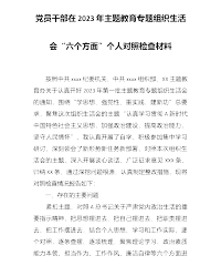 党员干部在 2023年第一批主题教育专题组织生活会“六个方面”个人对照检查材料(+案例分析)