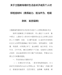 主题教育组织生活会班子成员个人对照检查材料(素质能力、担当作为、检视剖析,发言提纲)