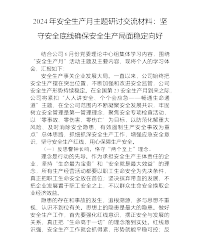 2024年安全生产月主题研讨交流材料:坚守安全底线确保安全生产局面稳定向好