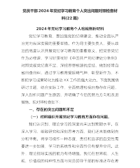 2023年度主题教育专题民主生活会领导班子对照检查材料(包括典型案例剖析)根据《关于开好专题民主生活会的通知》有关要求XX领导班子认真开展学习研讨、谈心谈话,紧密结合实际,全面对照检视,现将班子对照检查情况汇报如下。一、上年度民主生活会、XX巡察整改专题民主生活会发现问题整改落实情况。针对上年度民主生活会中查摆的XX个方面问题整改落实情况,截至目前已全部整改完成。一是加强政策理论武装,进一步提升政治业务素质,深入学习贯彻习近平新时代中国特色社会主义思想和党的二十大精神,制定集体学习和个人学习计划,组织开展个人自学及集体学习XX余次,自觉用习近平新时代中国特色社会主义思想武装头脑、指导实践、推动...