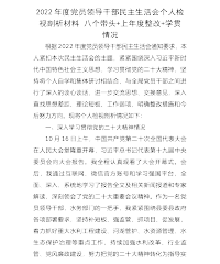 2022年度党员领导干部民主生活会个人检视剖析材料---八个带头+上年度整改+学贯情况