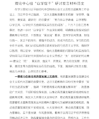 理论中心组“以学促干”研讨发言材料范文在学习贯彻习近平新时代中国特色社会主义思想主题教育工作会议上,习近平总书记强调,“这次主题教育要牢牢把握‘学思想、强党性、重实践、建新功’的总要求”“努力在以学铸魂、以学增智、以学正风、以学促干方面取得实实在在的成效”。7月7日在江苏考察时,他进一步对“以学促干”作出深刻阐释,明确提出各级党组织要教育引导党员、干部落实“重实践”要求,坚持学思用贯通、知信行统一,匡正干的导向,增强干的动力,形成干的合力。学习的目的全在于运用。我们必须弘扬理论联系实际的马克思主义学风,做到学以致用、用以促学、学用相长,强化主题教育的问题导向和实践导向,坚持用习近平新时代中国特...