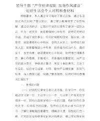 领导干部“严守纪律规矩加强作风建设”组织生活会个人对照检查材料根据要求,本人通过学习强化了理论武装,通过专项测试再次回顾了理论知识,通过警示教育树牢了思想根基,通过交流研讨,让我对于党的纪律有了更深一层的认识,作为一名党员,就是要做到心中有党,始终对党绝对忠诚,忠诚于党的事业,任何时候都相信党、服从党、依靠党;就是要做到心中有民,坚持人民至上,始终倾力服务人民;就是要做到心中有责,始终奋力担当作为,真抓实干,攻坚克难;就是要做到心中有戒,始终恪守清廉本色,廉心存敬畏,手握戒尺,不断强化党要管党、从严治党的政治责任,争做清正廉洁,务实干事的典范。立足工作实际,结合学习成果,对照“勤快严实精细廉”...