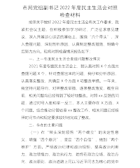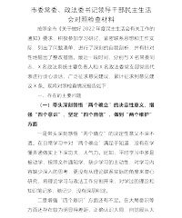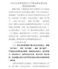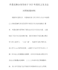 市场监督管理局党委班子2022年度“六个带头”民主生活会对照检查材料 XX市场监管局党委班子认真学习贯彻落实XXX精神,以习近平新时代中国特色社会主义思想为指导,紧紧围绕推进市场监管现代化、服务XX高质量发展战略要求,立足于找准问题、查摆问题、解决问题,紧盯全局政治建设、组织建设、作风建设、纪律建设,集中学习研讨,广泛征求意见,深入谈心谈话,细致严肃做好会前准备工作。现对照检查如下: 一、对照检查情况 (一)带头深刻领悟"两个确立"的决定性意义,增强"四个意识"、坚定"四个自信"、做到"两个维护"方面 一是理论学习不够深入。对党的政治理论思想高度还领悟不足,对新理论、新知识、新内涵的理解...