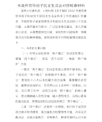 市场监督管理局党委班子2022年度“六个带头”民主生活会对照检查材料