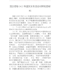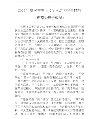 公文宝典(www.gongwenbaodian.com)收集整理,每天更新海量优质范文,让写材料变得简单!2022年度六个带头专题民主生活会个人对照检查材料(领导干部)为开好这次民主生活会,本人严格按照通知要求,深入学习党章、党的二十大精神,深入学习习近平总书记有关重要讲话精神,聚焦会议主题开展研讨交流,广泛征求各方面意见,深入开展谈心谈话,对照六个方面,深入进行对照检查,为开好这次民主生活会作了充分准备。现做个人对照检查如下:一、查摆的问题(一)在带头深刻领悟“两个确立”的决定性意义,增强“四个意识”、坚定“四个自信”、做到“两个维护”方面一是对“两个确立”内涵上认知不深刻。对全面贯彻“两个...