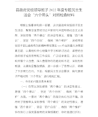 县政府党组领导班子2022年度专题民主生活会“六个带头”对照检查材料