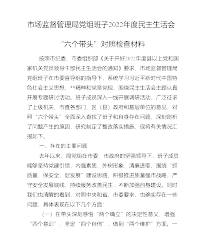市场监督管理局党组班子2022年度民主生活会“六个带头”对照检查材料