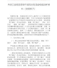 市场监督管理局党组班子2022年度民主生活会“六个带头”对照检查材料按照市纪委、市委组织部《关于开好2022年度县以上党和国家机关党员领导干部民主生活会的通知》要求,市场监督管理局党组班子在市委督导组的指导下,系统学习习近平新时代中国特色社会主义思想、**精神和党章党规,围绕民主生活会主题认真开展专题研讨活动。班子成员深入一线开展调研活动,广泛征求了上级机关、市直各部门、区(县)政府和基层单位的意见,对照“六个带头”全面深入查找了班子和自身存在问题,深刻剖析了问题产生的原因,研究制定了整改落实措施,现将有关情况汇报如下。一、存在的主要问题去年以来,局党组在市委、市政府的坚强领导下,班子成员能够...
