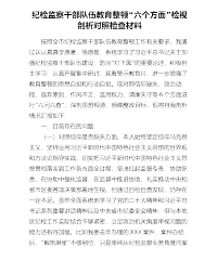“”纪检监察干部队伍教育整顿六个方面检视剖析对照检查材料 按照全市纪检监察干部队伍教育整顿工作有关要求,我通过认认真真学原著、悟原理,系统学习了习近平总书记关于加“”强纪检监察干部队伍建设、防治灯下黑的重要论述,积极自主学习、认真开展集中研讨、观看警示教育片,进一步增强了教育整顿的思想自觉和行动自觉。现对照信仰缺失、政治动摇、放弃原则、作风不正、滥用权力、清廉失守等6个方面进“”行六问六查,深剖思想根源,明确整改目标,现将自我剖析情况汇报如下: 一、目前存在的问题 (一)对照信仰是否缺失方面。本人始终坚定信仰马克思主义、坚持运用习近平新时代中国特色社会主义思想的世界观和方法论指导实践,切...