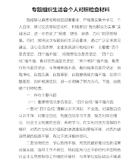 专题组织生活会个人对照检查材料 我能够认真贯彻局党组部署要求,严格落实集中学习、个“”人自学、研讨交流等规定动作,积极参加我为群众办实事实“”践活动,进一步夯实了明理、增信、崇德、力行的思想根基。同时,按照这次专题组织生活会要求,通过广泛征求意见“建议、谈心交流思想,全面系统进行检视分析,主要看四个”“是否坚定,四个强不强,即理想信念是否坚定、四个自”“”信强不强,看对党忠诚是否坚定、两个维护强不强,看责任担当是否坚定、斗争精神强不强,看自我革命是否坚定、自我净化、自我完善、自我革新、自我提高能力强不强,反思问题差距、剖析根源症结,进一步明确了努力方向。下面,由我做个对照检查。 一、存在主...