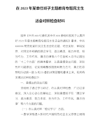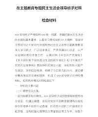 学习贯彻习近平新时代中国特色社会主义思想主题教育专题民主生活会班子对照检查材料本次民主生活会前,××××室班子严格按照《民主生活会方案》要求,紧扣会议主题,认真组织学习研讨、深入开展谈心谈话,对照六方面问题广泛征求意见建议、深刻查摆问题、深挖症结根源,明确了今后的努力方向和整改措施一、存在的主要问题(一)在理论学习方面。一是理论学习少态度。政治理论学习缺乏深度。虽然在学习方面有制度、有要求、有计划,但政治理论和业务学习时间上难以保证,在学习计划上难以落实。班子成员平时在具体工作上安排的多,而在学习上的自觉性、积极性和主动性不足,存在实用主义与工作关系密切的多学,与工作关系不大的少学,往往以会代...