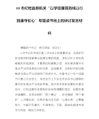 在XX市纪检监察机关“以学促廉筑防线以行践廉守初心”专题读书班上的研讨发言材料