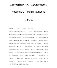 在全市纪检监察机关“以学促廉筑防线以行践廉守初心”专题读书班上的研讨发言材料