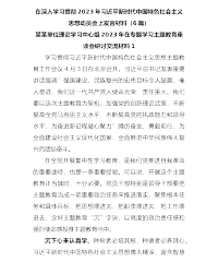 在深入学习贯彻2023年习近平新时代中国特色社会主义思想动员会上发言材料(6篇)某某单位理论学习中心组2023年在专题学习主题教育座谈会研讨交流材料1学习贯彻习近平新时代中国特色社会主义思想主题教育工作会议4月3日在北京召开。习近平总书记发表重要讲话强调”强国建设、民族复兴的宏伟目标令人鼓舞、催人奋进,我们这一代共产党人使命光荣、责任重大。我们要以这次主题教育为契机,加强党的创新理论武装,不断提高全党马克思主义水平,不断提高党的执政能力和领导水平,为奋进新征程凝心聚力”蹲厉奋发、勇毅前行,为全面建设社会主义现代化国家、全面推进中华民族伟大复兴而团结奋斗。在全党开展集中性学习教育,是我们党推进自...