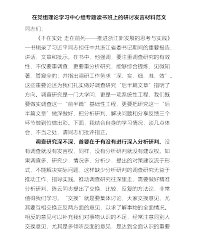 在党组理论学习中心组专题读书班上的研讨发言材料范文同志们:《干在实处走在前列——推进浙江新发展的思考与实践》一书辑录了习近平同志担任中共浙江省委书记期间的重要报告、讲话、文章和批示。在书中,他强调,要注重调查研究的有效性,不仅要重调查,更要重分析研究,能够综合提炼、见微知著、管窥全豹;并指出调研工作务求“深、实、细、准、效”。这些重要论述为我们扎实做好调查研究“后半篇文章”指明了方向。调查研究是一门大学问,更是一项系统性工程,我们既要做实调查这一“前半篇”基础性工程,更要把研究这一“后半篇文章”做深做好,把分析研判、解决问题和分享反馈三个环节做到位做出彩。下面,我结合自身的学习情况,谈几点体会...
