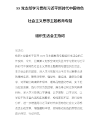 XX党支部学习贯彻习近平新时代中国特色社会主义思想主题教育专题组织生活会主持词